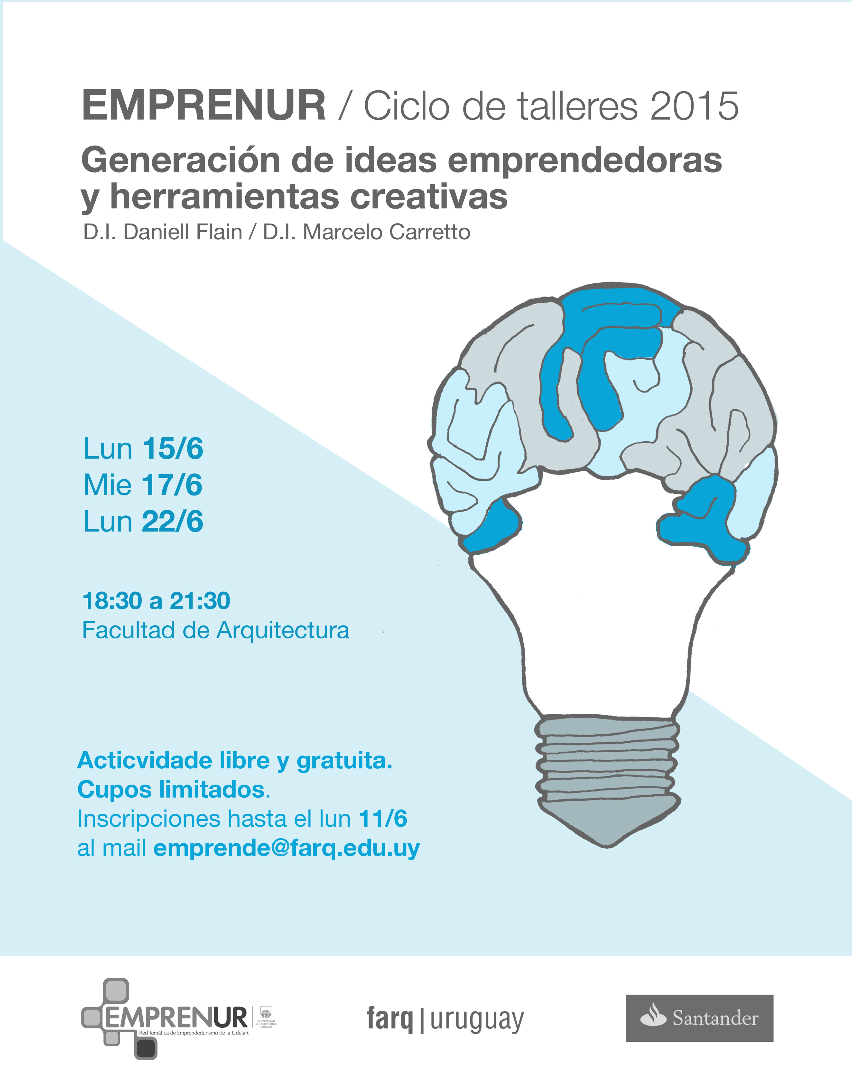 Un taller que brinda herramientas para la etapa inicial del proceso emprendedor, promoviendo la generación de ideas y el proceso creativo. Esta actividad está dedicada a estudiantes de cualquier Servicio de la Udelar y emprendedores en general, y buscará brindar en un clima distendido, algunas herramientas y estrategias útiles para emprender.