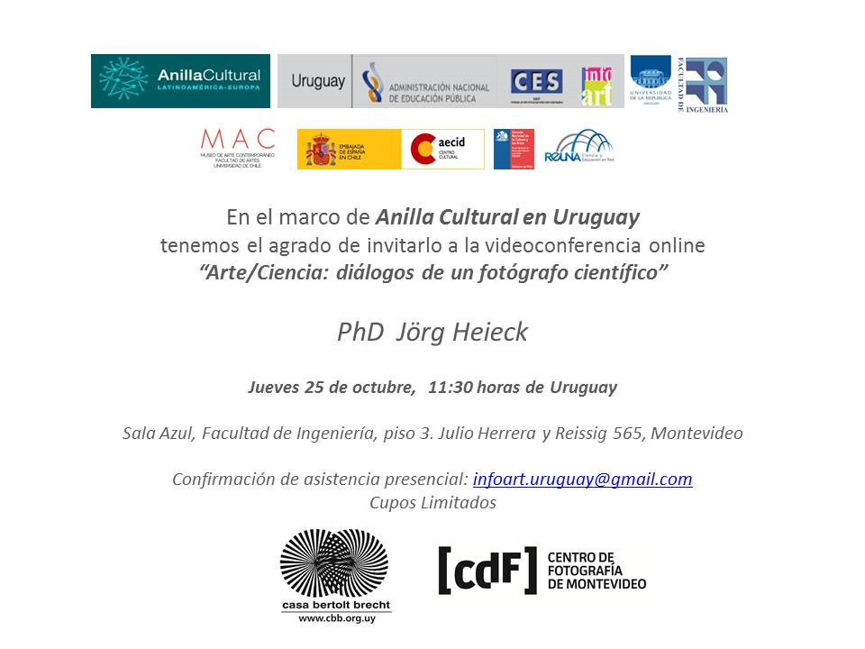El próximo jueves 25 de octubre se realizará la videoconferencia online "Arte/Ciencia: diálogos de un fotógrafo científico" por el PhD Jörg Heieck.