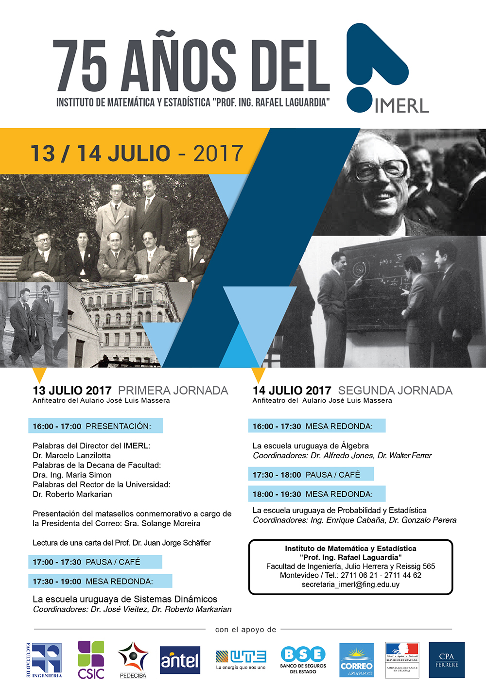 El Instituto de Matemática y Estadística “Prof. Ing. Rafael Laguardia” festeja sus 75 años e invita a toda la comunidad universitaria a los actos de festejo e intercambio que se realizarán los días 13 y 14 de julio de 2017.