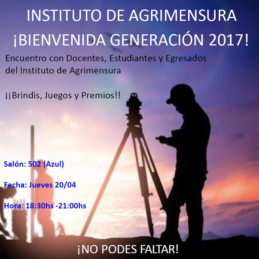 El Instituto de Agrimensura (IA) organiza nuevamente su bienvenida anual a los nuevos estudiantes de la carrera, buscando un espacio para intercambiar experiencias, escuchar inquietudes y establecer los vínculos entre quienes componen el Instituto.