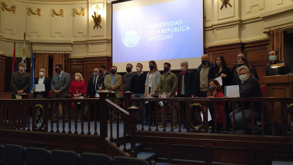 El Paraninfo se reabrió luego de 4 meses para un acto que reconoció la calidad científica de varios equipos de investigadores de la Udelar y otras instituciones, que trabajan en proyectos dirigidos a la solución de la epidemia de COVID 19.
