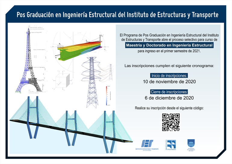 La Sub Comisión de Académica de Posgrado del Área Civil (SCAPA-Civil) abre el período de inscripciones para nuevos ingresos primer semestre 2021 a las carreras de Maestría y Doctorado en Ingeniería Estructural.