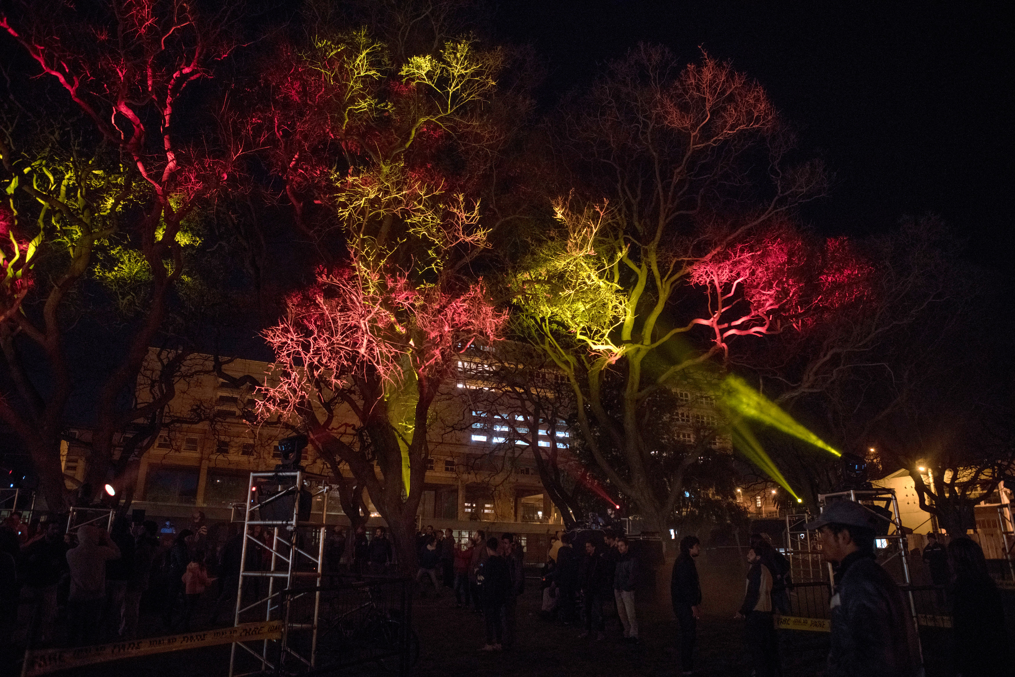 A partir de las 21 horas del sábado, la música y las luces se adueñaron del espacio que rodea la Facultad, en el pasaje de árboles al oeste del edificio. El broche de oro de IdM integró una propuesta audiovisual en la que se escucharon intervenciones de la decana y de varios estudiantes de Fing al ritmo de música electrónica y varios otros sonidos. La naturaleza que rodeaba a los participantes fue escenario de un show de luces que invitaba a mirar y a dejarse llevar por la música. Head Brother y el Laboratorio de Medios del Inco (Medialab) lograron de ese modo sorprender a los allí presentes con un espectáculo que hizo hincapié en vivir una experiencia única y para el recuerdo.