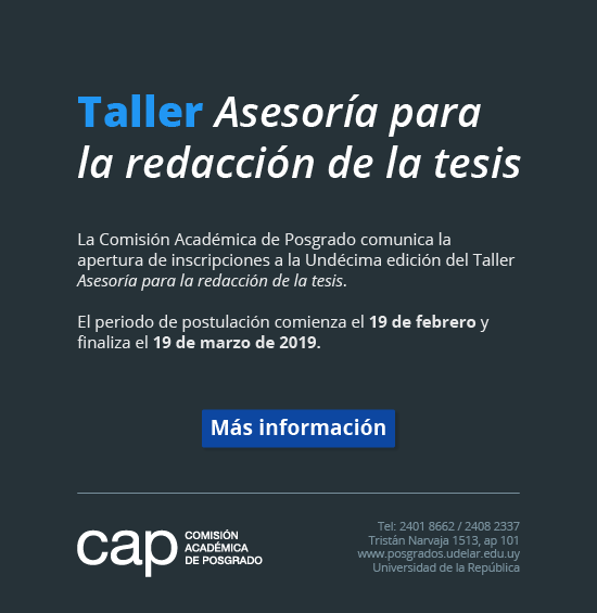 Se encuentran abiertas las inscripciones al Taller Asesoría para la redacción de la tesis de la Comisión Académica de Postgrado.